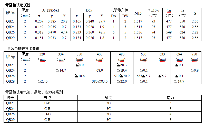 青藍色玻璃——牌號:QB23/QB24/QB26/QB29